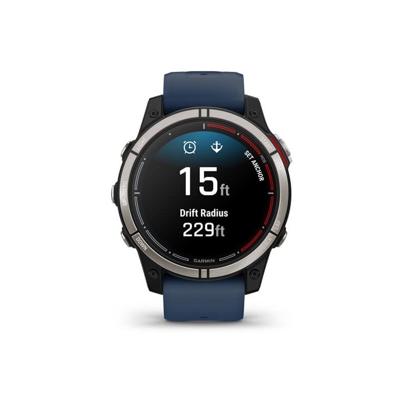 Для кращої обізнаності щодо навколишньої ситуації на воді годинник quatix® 7 – Sapphire Edition попереджає вас про зміни припливу та дрейфу відносно місця якірної стоянки.