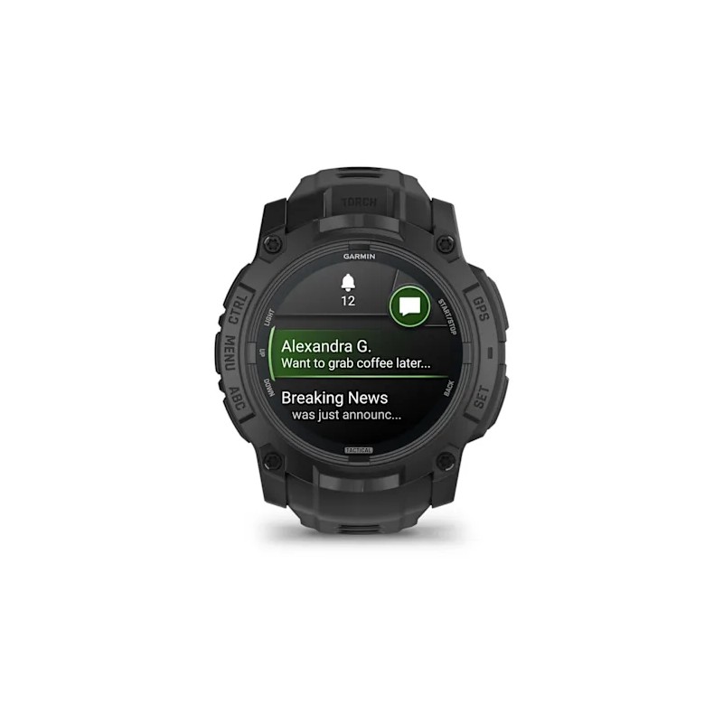 Instinct 3 — Tactical Edition — це надійний GPS-смартгодинник, створений для найважчих місій, з AMOLED-дисплеєм, посиленим металом безелем та спеціальними тактичними функціями.